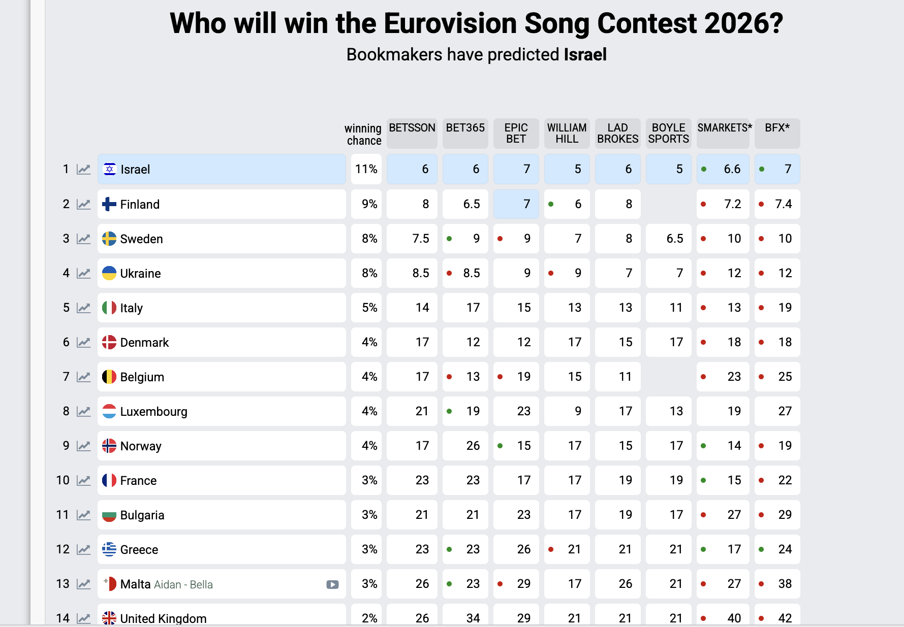 На старті прогнозів Україна впевнено трималася у трійці потенційних лідерів разом з Ізраїлем та Швецією.