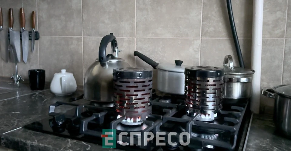 фото: Катерина Галко”Після останнього влучання в школу поруч світла не було дві доби. Зараз, завдяки тому, що ДТЕК працює і люди працюють, світло з’явилося. У квартирі холодно, але ми підтримуємо температуру”, – каже пані Ірина і паралельно вже відпрацьованим рухом запалює газовий обігрівач. “Коли ми з чоловіком на кухні, гріємо тут, або у ванній – де потрібно. У нас є ще один балон. І є ось така велика газова горілка. Але нею користується лише чоловік – я боюся”, – усміхається жінка.Такі прилади справді працюють: у затишній квартирі пані Ірини доволі тепло – термометр показує +16 градусів. Для сучасних київських реалій це майже спека. На кухні жінка демонструє ще один пристрій – грілку-циліндр. “Це такі штуки, які ставляться на газ. Просто ставиш на горілку – і вони дуже гарячі, дають багато тепла”, – пояснює вона.