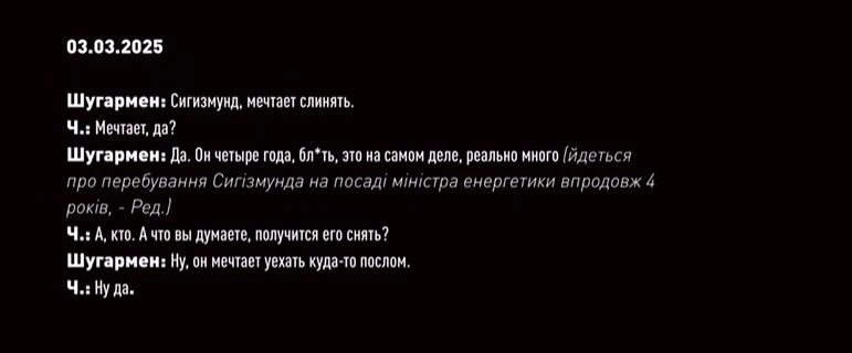 Схема виведення коштів для родини Сігізмунда, фото: НАБУЗа даними НАБУ і САП Сігізмунд відіграв не останню роль у схемі “Шлагбаум” через яку розкрадали кошти на закупівлях Енергоатома. Саме міністр енергетики безпосередньо лобіював перед міністром стратегічних галузей промисловості питання забезпечення мораторію на виплату заборгованості за виконаними контрактами. Простіше кажучи, дозволяло не розраховуватись вчасно з підрядниками за виконані роботи. Це зробило можливим схему “шлахбаум”, за якою, аби отримати виплати за контрактом, підрядник мав сплатити 10 – 15% відкату. При цьому зазначимо, що Енергоатом – це одна з найбільших компаній в Україні і ціни тендерів, які вона оголошувала, сягали сотні мільйоні гривень. За оцінкою НАБУ злочинна група отримала понад $112 млн готівкою на схемах в енергетичному секторі. У результаті, частина з отриманих відкатів перепадала міністру.”Отримані детективами докази свідчать, що впродовж 2021 – 2025 років на користь Сігізмунда відмили 12 млн доларів США. Кошти переважно накопичувались на рахунках фонду у банківських установах Швейцарії та клали на депозит, з якого родина Сігізмунда отримувала додатковий дохід”, повідомив детектив НАБУ Олександр Абакумов.За його словами, 7,4 млн отримав на рахунках компаній на Маршаллових Островах. Ще майже 4 були видані готівкою у Швейцарії (рахунки були відкрити у трьох швейцарських банках) і йшли частково на оплату дорогого навчання дітей, частина йшла на картки колишньої дружини, частина – на медичні послуги у клініці Шугармена (Цукермана), а також брендовий одягу у київських бутіках.До речі, в одному з епізодів, датованому березнем 2025 року Шугармен (Цукерман) говорить про те, що міністр хоче “слинять” і мріє поїхати кудись послом.