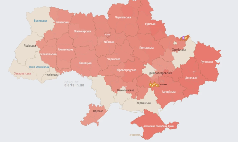 фото: Карта повітряних тривогПовітряні сили на цей час повідомляли про рух ворожих безпілотників також у низці інших областей України. Велику кількість БПЛА фіксували на півдні Сумщини, на півночі Полтавщини, на Чернігівщині, на півночі та в центрі Київщини, у центрі та на заході Черкащини, на півдні та заході Вінниччини, на заході Кіровоградщини, на півночі Херсонщини та на півдні Дніпровщини.