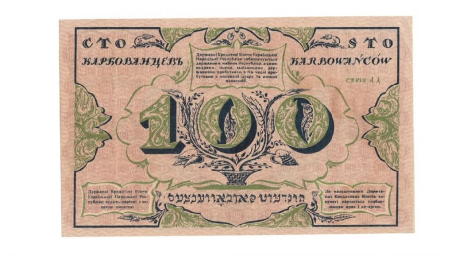 фото: uinp.gov.ua Першою в обіг 5 січня 1918 року увійшла купюра номіналом 100 карбованців (яка була надрукована ще у 1917 році). Її ескіз створив видатний художник-графік Георгій Нарбут. Це був справжній шедевр українського бароко з орнаментами, тризубом (який тоді ще не був офіційним гербом), декоративними шрифтами та зображенням куші (арбалету – символу Києва).До речі, цікавий момент, що напис “100 карбованців” подавався чотирма мовами: українською, російською, польською та їдишем – як знак поваги до національних меншин, які становили великий відсоток тодішньої УНР.Друкували банкноти в найкращій на той час київській друкарні Василя Кульженка (сьогодні це вул. Чикаленка, 4). Папір був звичайним, без водяних знаків, а через поспіх уся перша серія вийшла з перевернутим реверсом. Через це та низький захист швидко з’явилися фальшивки (кліше навіть викрали більшовики під час короткочасного захоплення Києва).У народі 100 карбованців прозвали “яєчнею”, через яскравий жовтий колір першої банкноти. Також карбованці ще називали “горпинками”, через орнамент, схожий на вишивку на жіночих фартухах. Пізніше з’явилися номінали 10, 25, 50, 250, 1000 карбованців. Купюри 25 і 50 карбованців називали “лопатками” – через зображення селянина з лопатою як символ праці. Загалом ці гроші мали популярність у народі, адже стали першим матеріальним втіленням української державності, хоча через війну та інфляцію швидко втрачали купівельну спроможність.Зміна влади – зміна грошей