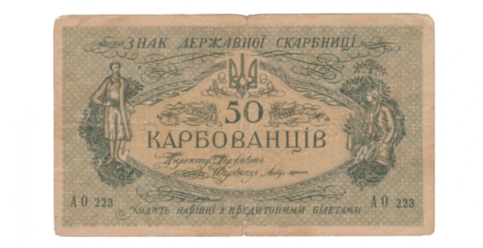 Зображення будівлі Центральної Ради на звороті сучасної купюри 50 гривень, фото: НБУУкраїнська Народна Республіка виникла внаслідок Лютневої революції 1917 року в Російській імперії. 20 листопада 1917 року Центральна Рада IV Універсалом проголосила повну незалежність УНР. На той час на території України в обігу залишалися царські рублі, “керенки” (ті самі рублі, але Тимчасового уряду), німецькі марки та інші чужі валюти. Економічна криза, інфляція та потреба фінансувати державний апарат, армію й соціальні програми вимагали створення власної грошової системи. Без національних грошей молода республіка залишалася залежною від колишньої імперії та окупантів.Саме тому Центральна Рада вже в грудні 1917 року ухвалила Тимчасовий закон про випуск державних кредитових білетів УНР, запровадивши нову одиницю – карбованець (1 карбованець = 17,424 долі чистого золота).Перші карбованці: дизайн, друк і популярність